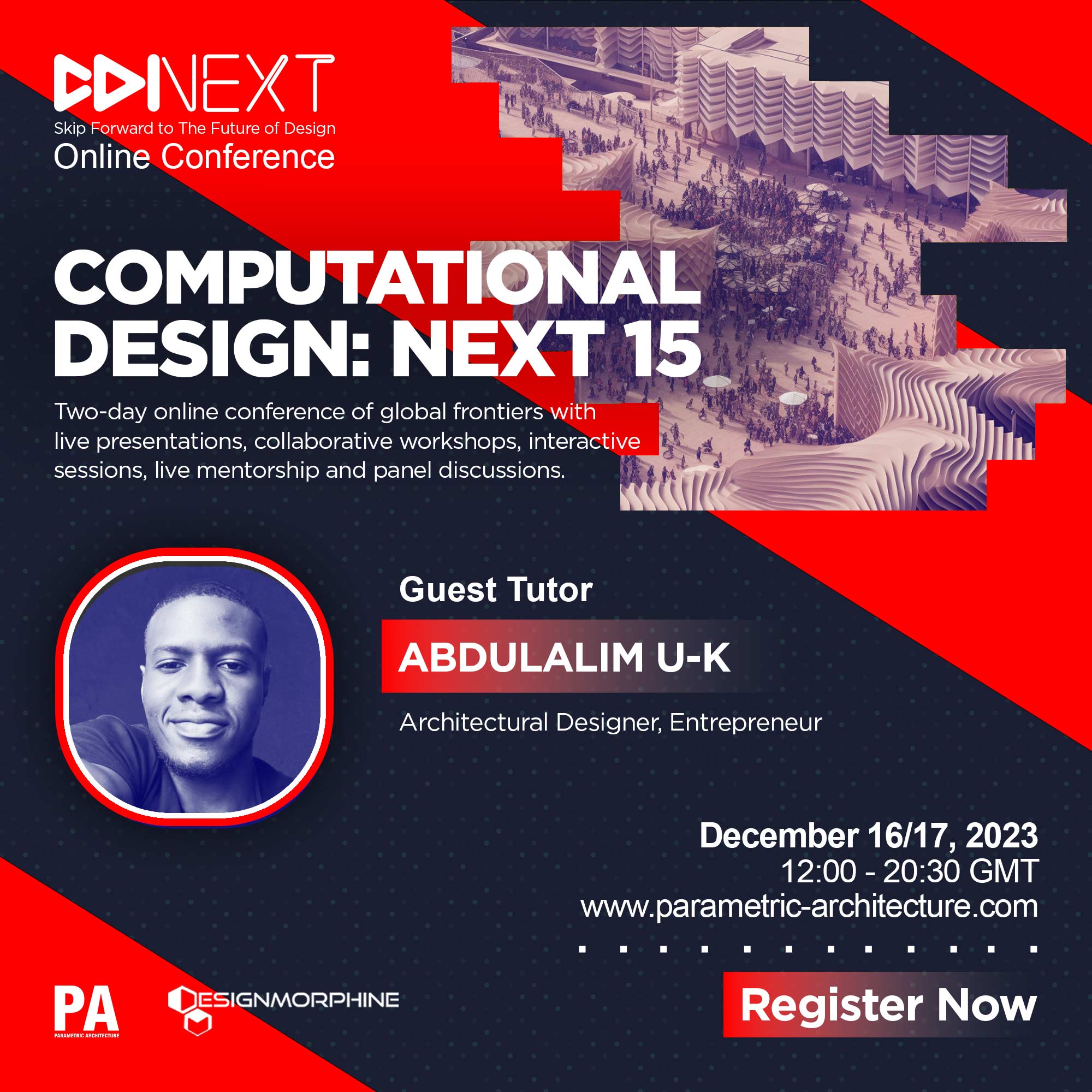 THE PAST, PRESENT FUTURE: An online interactive conference with global frontiers. Two-day online conference with live presentations, tutorials, interactive Sessions, live mentorship panel discussions. A collaborative initiative by ParametricArchitecture (PA) and DesignMorphine (DM). Computational Design: NEXT 15.0 brings together pioneers and professionals from all industries to meet and discuss new emerging technologies in art, architecture, design, and manufacturing.